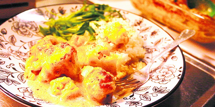 Pilko kukkakaalit ja keitä currylla maustetussa vedessä 10 minuuttia.