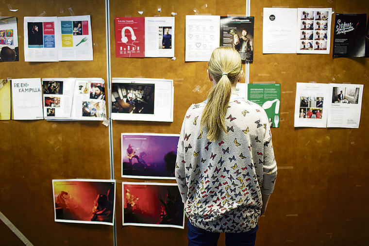 Opiskelija Krista Kierikka arvostaa linjan käytännönläheisiä opintoja. Valokuvauksen ja taiton perusteita käydään läpi tiiviissä pienryhmässä. Välillä oikeat lehtikuvaajat vierailevat antamassa lähiopetusta. Kuuluuko tällainen akateemiseen maailmaan?