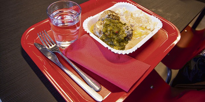 Rempseä asiakaspalvelija mättää pari reilua kauhallista savujuustoperunoita valkoisen kartonkikippoon. Viereen hän asettelee kolme isoa lihapullaa ja kastiketta. Annokseen kuuluu myös kurkkusalaatti, jonka ottamisesta kysytään etukäteen.