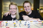 - Restonomiopiskelijat Emma Ketopelto ja Tomi Marronen houkuttelivat opiskelijoita urheilemaan pöytäjääkiekon avulla.