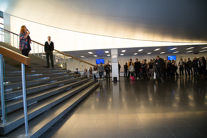 Tampereen yliopiston pääaulassa järjestettiin 1. joulukuuta pääministeri Juha Sipilän hallituksen leikkauspolitiikkaa kritisoiva koulutusleikkausten vastainen mielenilmaus. Puhumassa oli yliopiston professoreita, tutkijoita, opettajia ja opiskelijoita. Puhujien viesti hallitukselle oli, että Suomi tarvitsee pitkäjänteistä, kriittistä ja tutkimustietoon perustuvaa koulutusajattelua eikä lyhytnäköisiä leikkauksia ja kärkihankkeita.