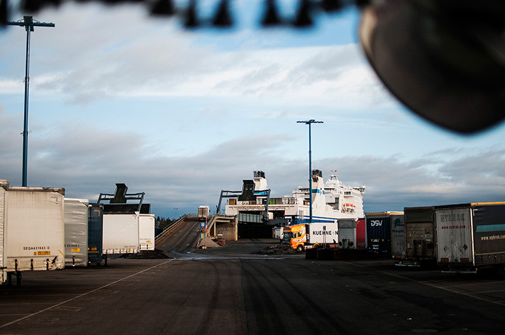 Pääsemme laivaan vähän ennen viittä. Kun köydet irtoavat, Marko on jo näyttänyt minulle laivasta kaiken olennaisen. Ravintola, tax-free, sauna, baari. Kuljettajien oma lounge, jossa sisällä saa ilmeisesti tupakoida. Muuta ei oikeastaan ole. Hytissä on sohva ja kaksi petiä. Tuntuu ja näyttää ruotsinlaivalta. Hytti on ikkunaton, ja se herättää kuljettajissa närää. Matkustajia on vähän, joten miksi hyviä paikkoja ei jaettu ensin? WLAN toimii huonosti ja televisiosta näkyvät peruskanavat eivät tyrmää tarjonnallaan. Näistä tulee kiinnostavat 29 tuntia.