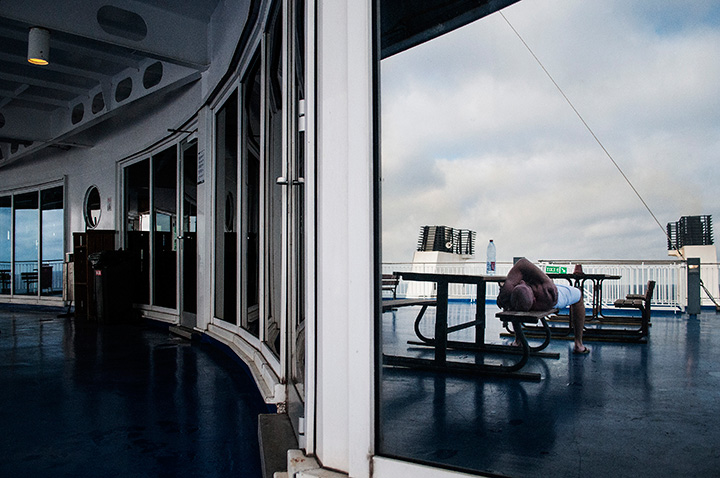 Ilta baarissa loppuu yhden jälkeen. Poltamme tupakkaa pimeällä kannella ja suunnittelemme kiteeläisen Juhan kanssa puolitosissamme yhteistä matkaa: Euroopan rantoja pitkin Afrikkaan. Ehkä joskus.
